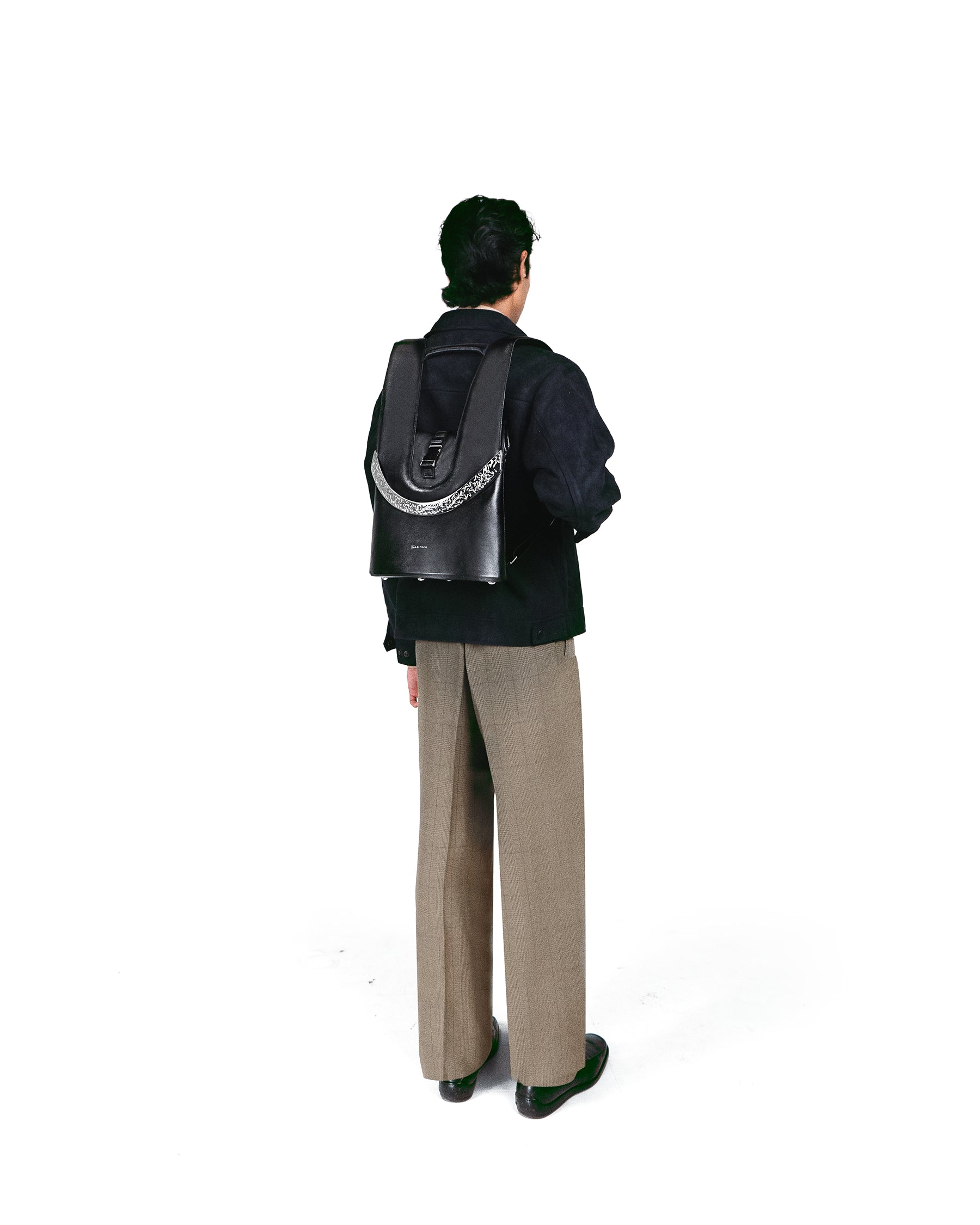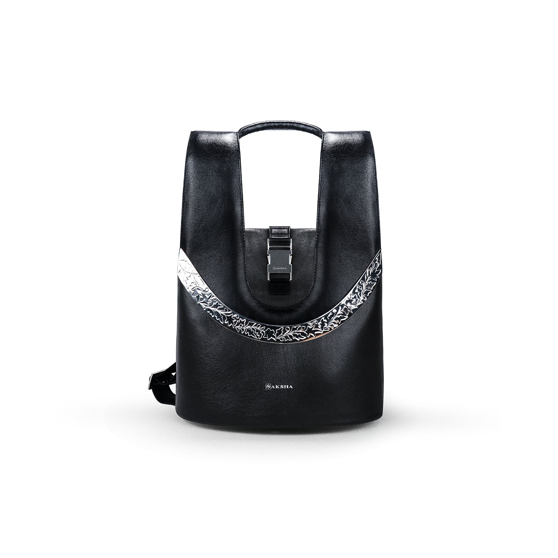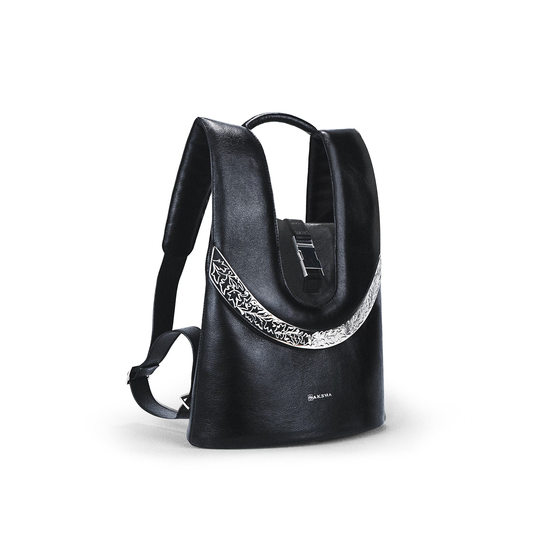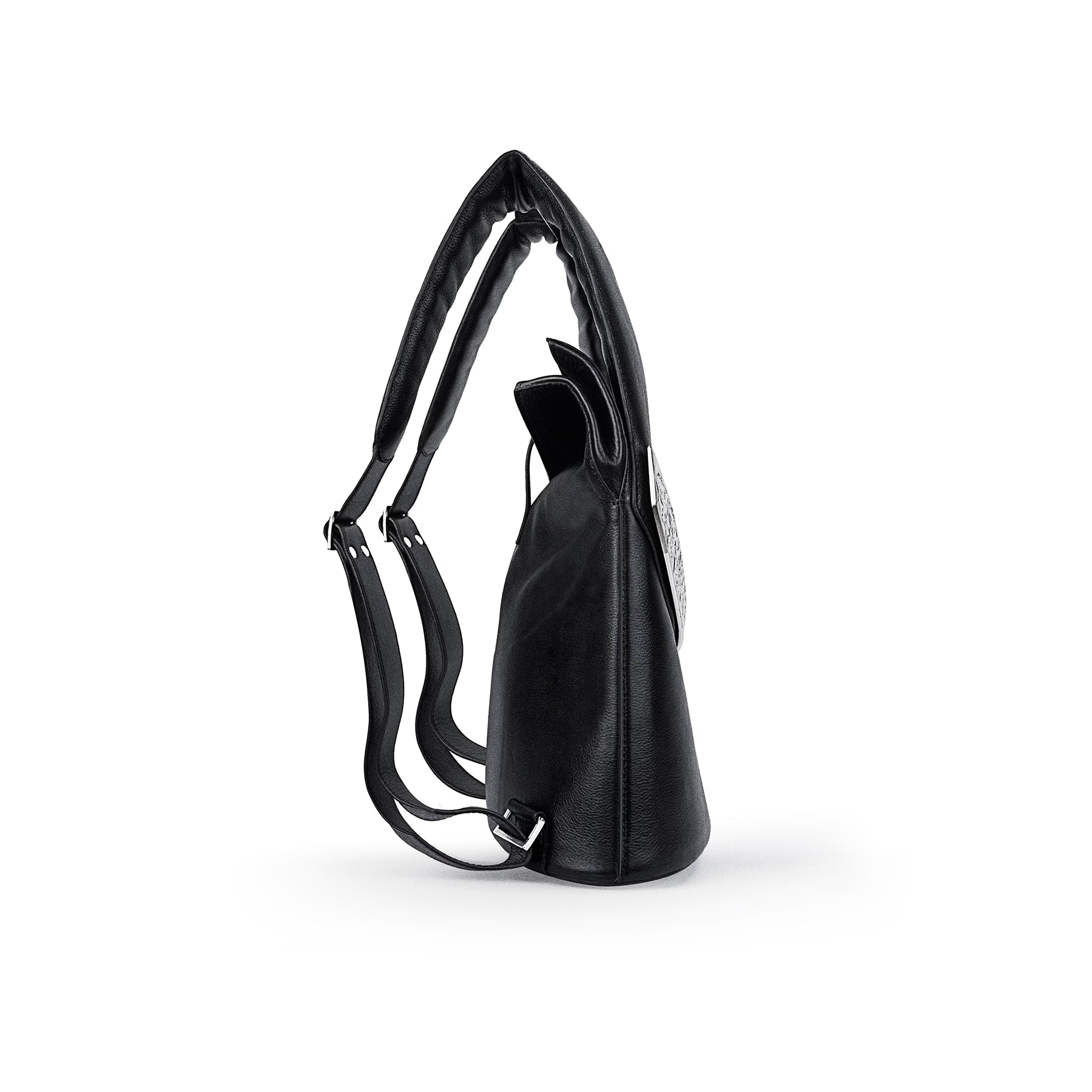 Mini bagpack structured around an arched metal. Individually hand-engraved and executed over 60 hours of handwork.