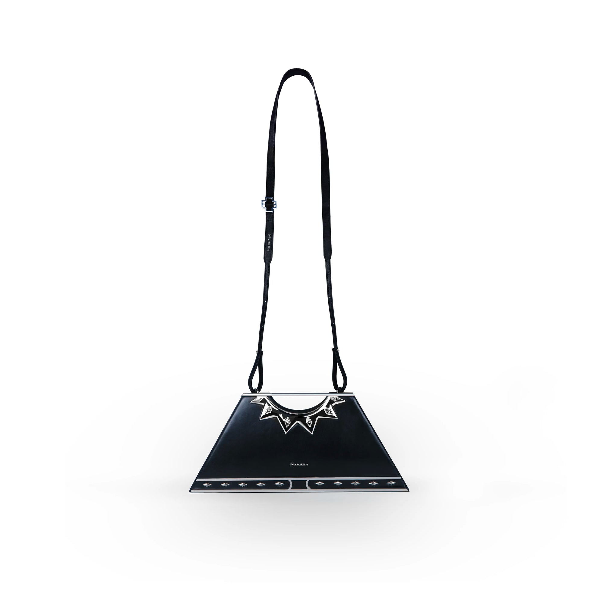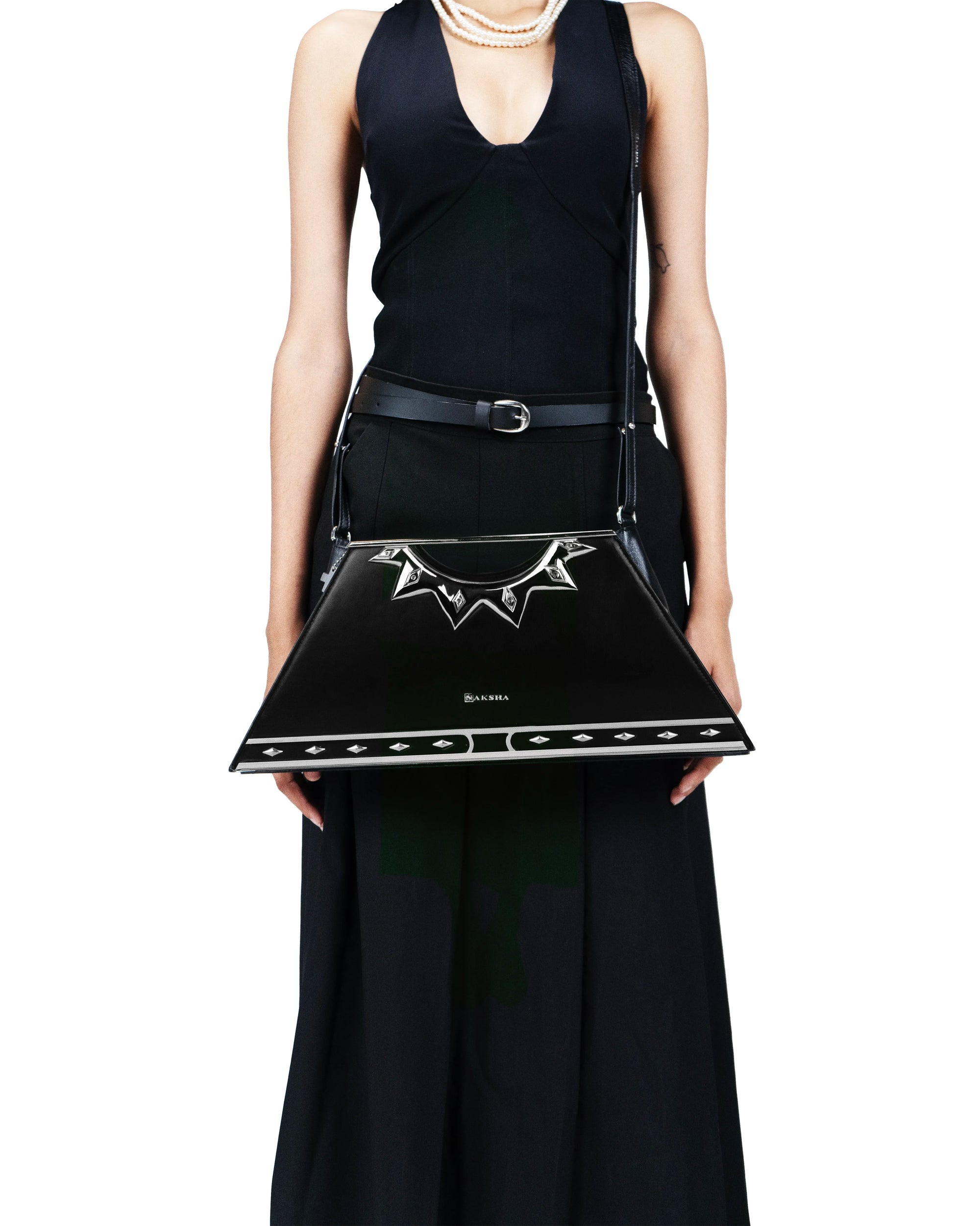The Sun Bangle Bag draws inspiration from vintage traditional bangle jewellery. A timeless adornment worn by women, reimagined as a striking, functional handle. Shaped like the sun, this element ties the piece back to themes of heritage and transformation that define Naksha Outpost.